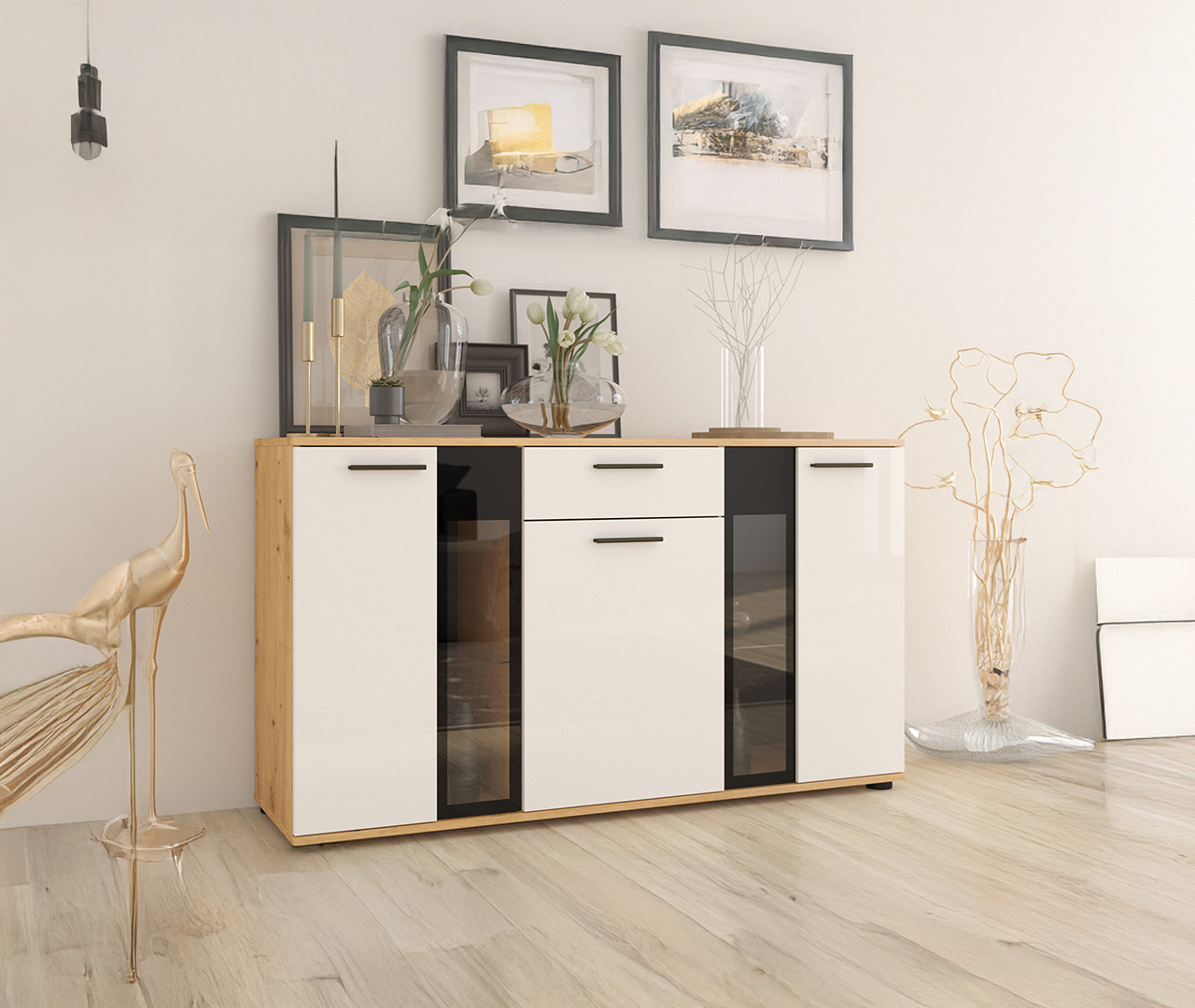 Komoda Pixel Biały/Dąb Artisan